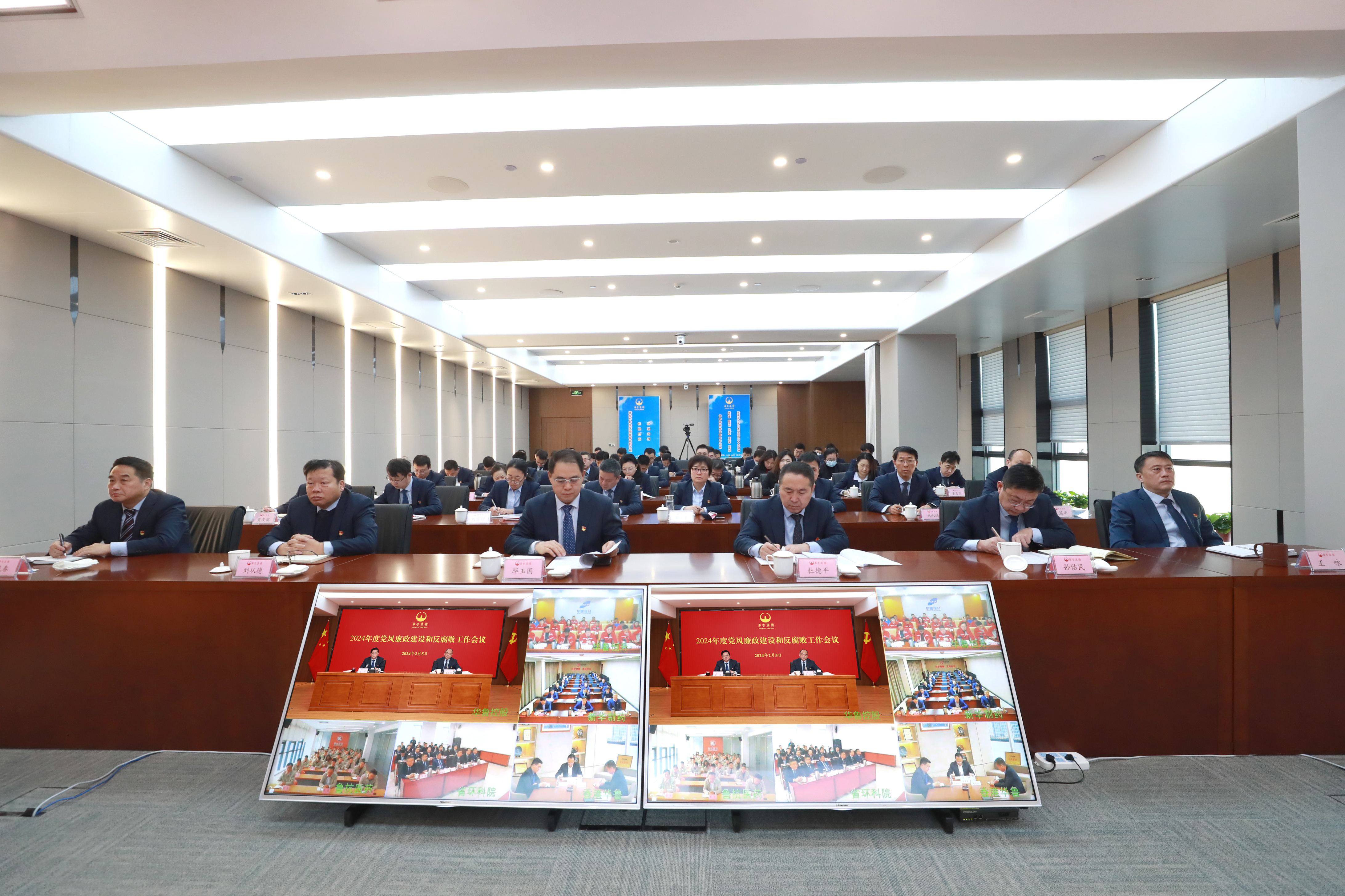 會議以現(xiàn)場加視頻形式召開,控股公司設(shè)主會場,華魯恒升、新華制藥、魯抗醫(yī)藥、省環(huán)科院、香港華魯設(shè)分會場。